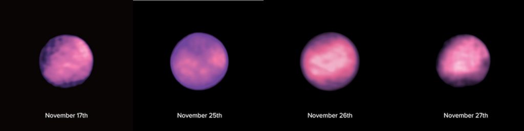 A diferencia de los telescopios ópticos, que solo pueden detectar la luz solar reflejada por los cuerpos planetarios, los telescopios como ALMA captan el “brillo” térmico emitido naturalmente incluso por los objetos más fríos de nuestro Sistema Solar, como los cometas, asteroides y lunas. La temperatura superficial de Europa nunca supera los 160 grados Celsius negativos.