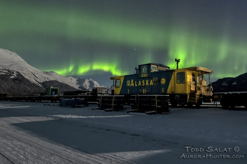 Fotografía de auroras boreales tomada la madrugada del martes, 2 de febrero de 2021, a las afueras de Anchorage (Alaska, Estados Unidos). La captura tiene un tiempo de exposición de 2 segundos, 3200 de ISO y f/2 de apertura. Se usó una cámara Nikon D850.