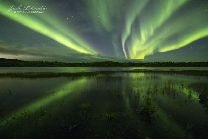 Varias franjas de auroras boreales cruzan el cielo sobre Yellowknife en los Territorios del Noroeste, Canadá. La fotografía fue tomada la noche del viernes, 14 de septiembre de 2018, con una cámara Canon EOS 6D Mark II; tiene 1,3 segundos de tiempo de exposición y 6400 de ISO.