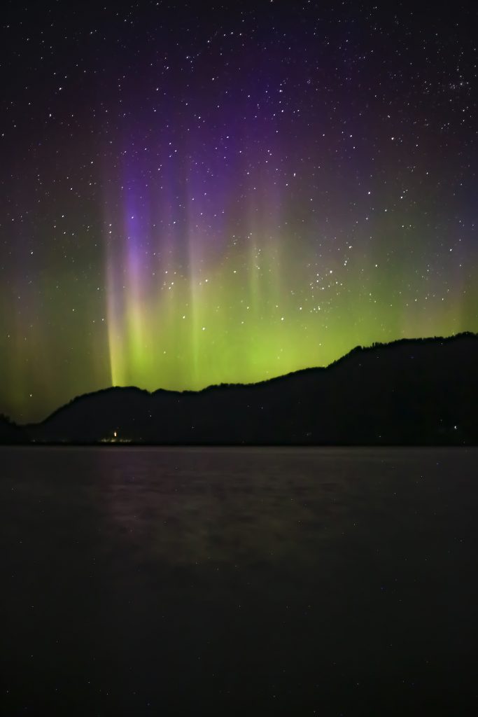 Fotografía de auroras boreales tomada la noche del 11 de mayo de 2019, desde Sandpoint en el estado de Idaho, Estados Unidos. Se utilizó una cámara Canon EOS 5D Mark III a 50mm de distancia focal y f/1,8 de apertura. El tiempo de exposición es de 6 segundos y 3200 de ISO.