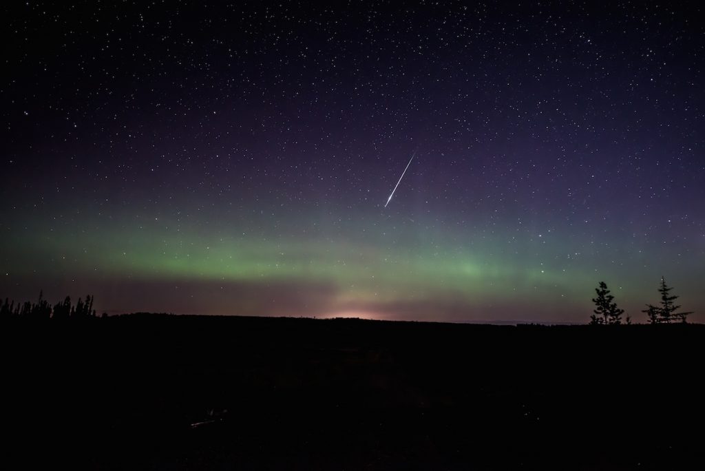 Auroras boreales y un meteoro desde Alberta, Canadá