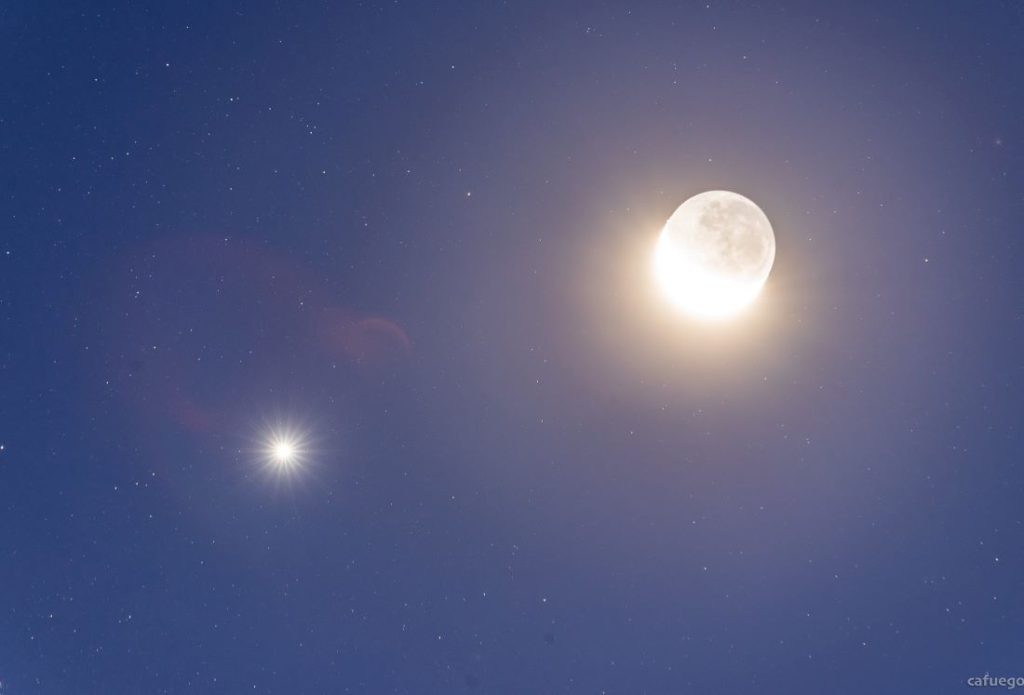 6 Conjunción de la Luna y Venus al anochecer en dirección Suroeste. Máxima aproximación a las 02:00 UTC (día 7). Magnitud de Venus de -4,7. Esta será la última conjunción entre la Luna y Venus antes de que el planeta se coloque en conjunción inferior con el Sol en enero de 2022 y comience su tránsito hacia el cielo matutino. Ver imagen