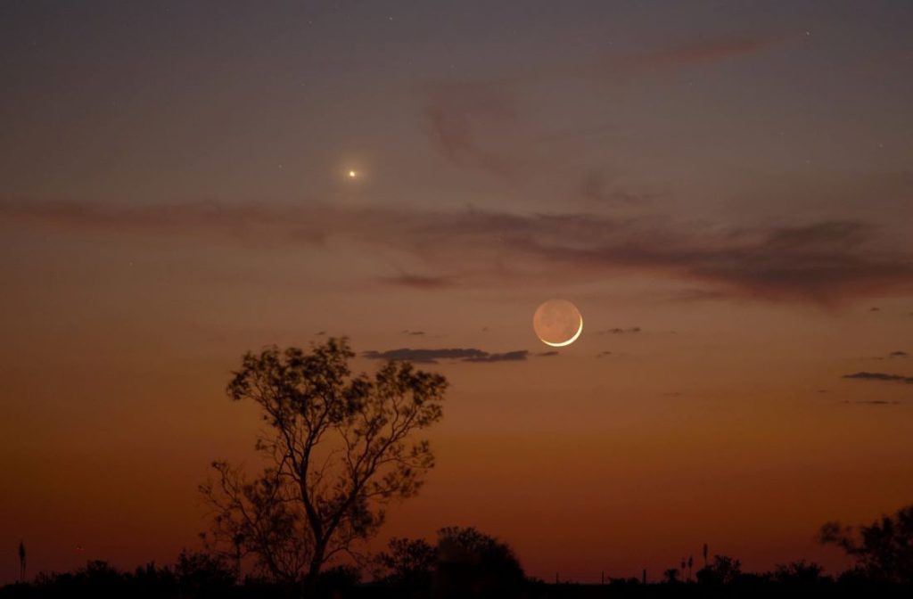 9 Conjunción de la Luna, Venus y la estrella Antares, visible al anochecer en dirección Suroeste. Aproximación máxima entre la Luna y Venus a las 21:00 UTC; entre la Luna y Antares a las 09:00 UTC (día 10). Magnitudes: Venus -4,2; Antares +1,1. Ver imagen