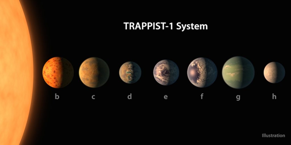 Con tan solo el 8% la masa del Sol, TRAPPIST-1 es muy pequeña en términos estelares (solo un poco más grande que el planeta Júpiter) y, aunque está relativamente cerca de nosotros, en la constelación de Acuario (el aguador), es muy tenue. Los astrónomos esperaban que este tipo de estrellas enanas pudieran albergar muchos planetas del tamaño de la Tierra en órbitas apretadas, convirtiéndolas en objetivos prometedores para la búsqueda de vida extraterrestre, pero TRAPPIST-1 es el primer sistema de este tipo descubierto.