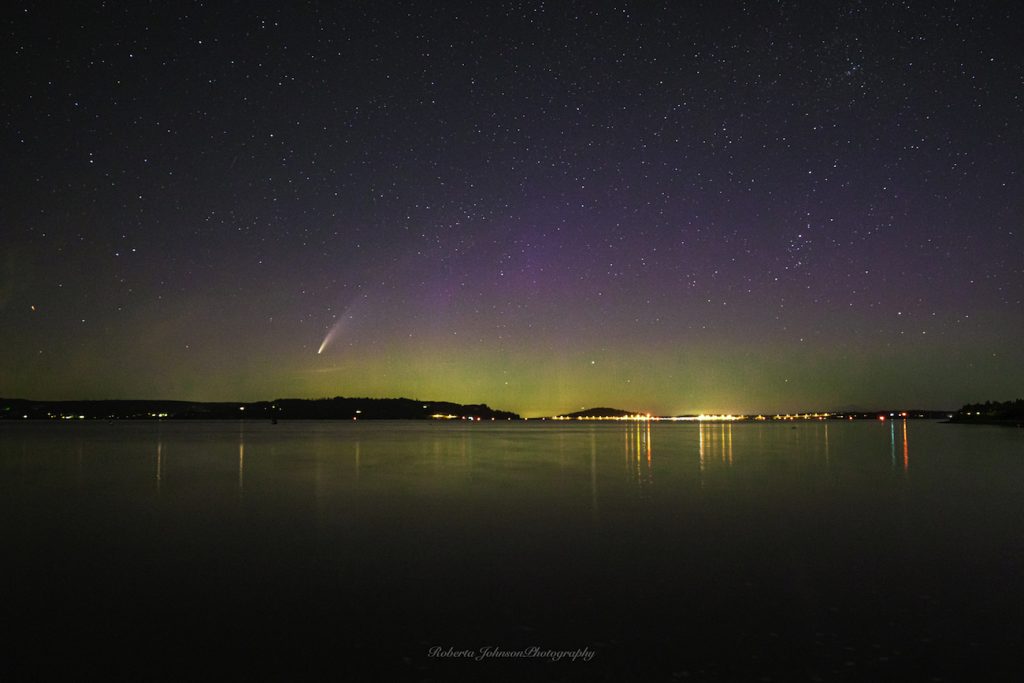 El Cometa C/2020 F3 (NEOWISE) y auroras boreales, captados desde Washington, Estados Unidos