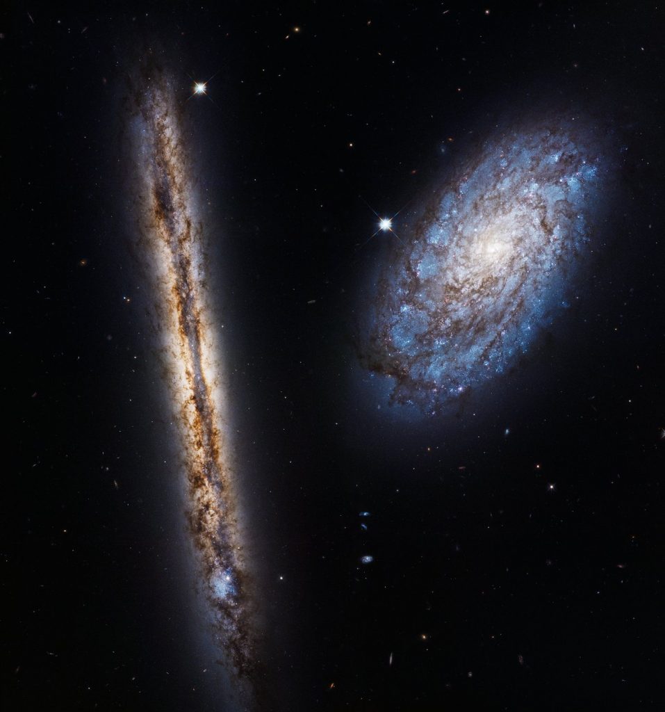 Esta imagen muestra a un par de galaxias espirales conocidas como NGC 4302 y NGC 4298. Están ubicadas a 55 millones de años luz en la constelación de Coma Berenices. Fueron descubiertas por el astrónomo William Herschel en 1784 y forman parte del Cúmulo de Virgo, un cúmulo galáctico compuesto por alrededor de 2.000 galaxias.
