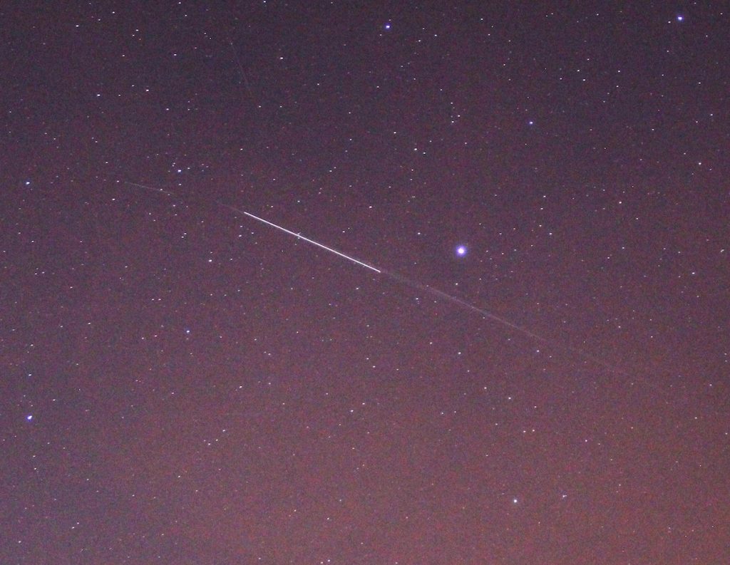 Imagen de un rastro de luz dejado por satélites Starlink durante su paso sobre Yuzhno-Morskoy, Nakhodka, Rusia, la noche del domingo, 26 de mayo de 2019. Se utilizó una cámara Canon EOS 60D; tiene 13 segundos de tiempo de exposición, 2500 de ISO y f/3,5 de apertura.
