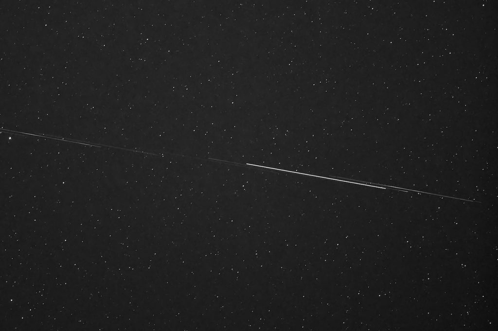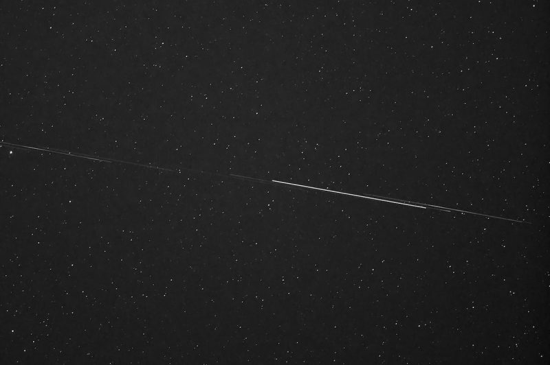Esta imagen muestra varios rastros de luz dejados por el paso de satélites Starlink la noche del lunes, 27 de mayo de 2019, en Cedar Rapids, Iowa, Estados Unidos. Se utilizó una cámara Sony ILCA-99M2; la captura tiene 6 segundos de tiempo de exposición, 6400 de ISO y f/2,8 de apertura.