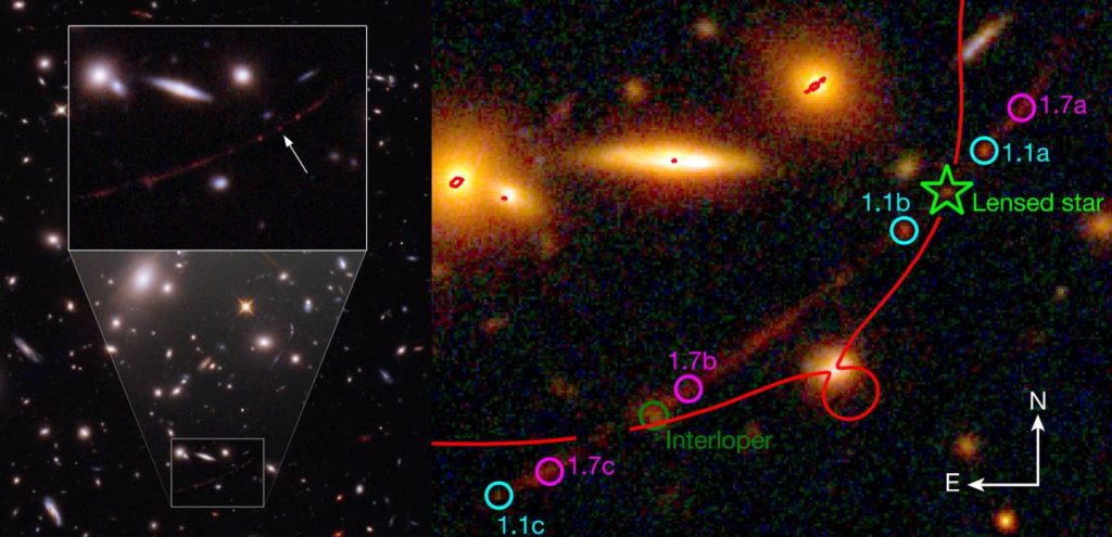 «Normalmente, a estas distancias, las galaxias se ven como pequeñas manchas, porque la luz de millones de estrellas se mezcla”, indica Diego, “y la galaxia que alberga a Eärendel ha sido magnificada y distorsionada por lentes gravitacionales”.