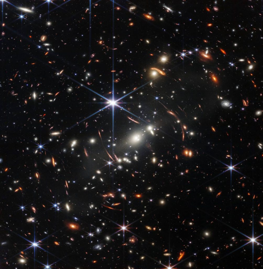 Conocida como el primer campo profundo del Webb, la imagen muestra el cúmulo de galaxias SMACS 0723, tal y como lucía hace 4.600 millones de años. La porción del vasto universo que muestra la imagen sería del tamaño de un grano de arena sostenido a la distancia de un brazo extendido para una persona que lo observara desde tierra.