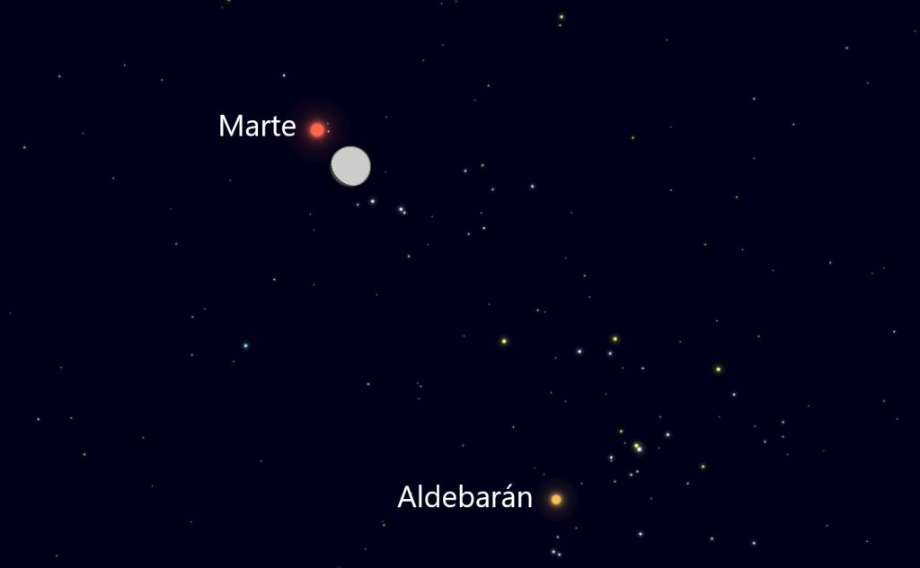 También se producirá la ocultación de Marte por la Luna, pero este evento será visible únicamente desde el sur de África.