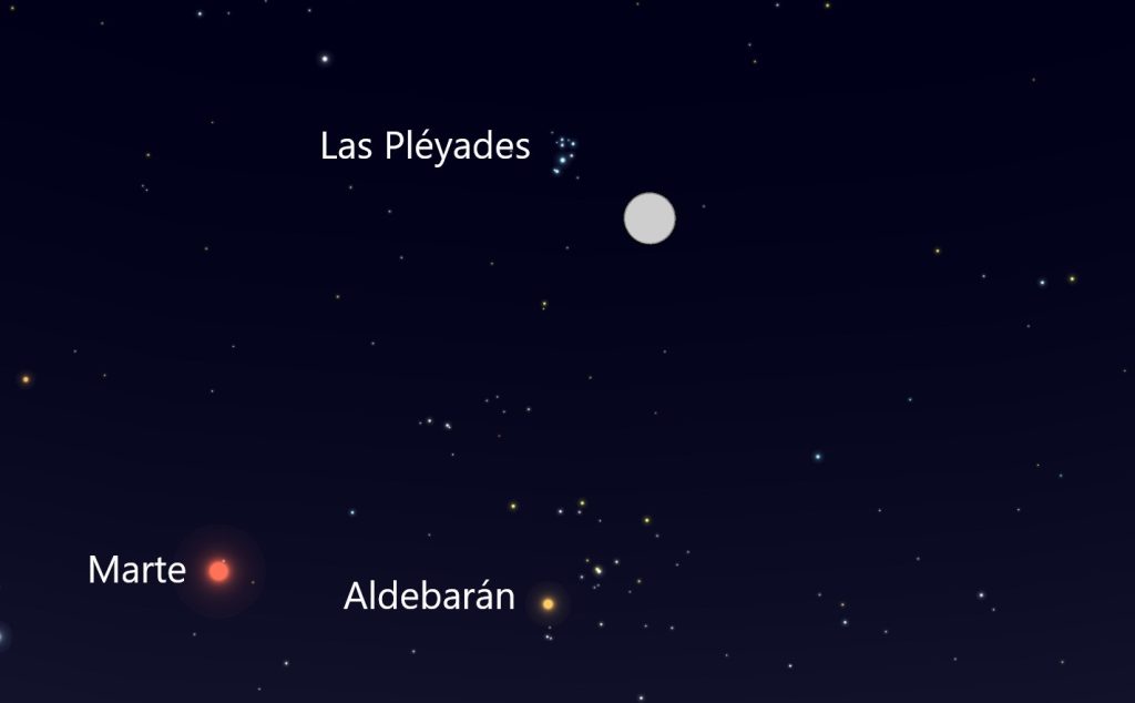 La conjunción de la Luna y el cúmulo abierto de las Pléyades será visible durante la noche del martes, 6 de diciembre de 2022, comenzando al anochecer en dirección Este. La aproximación máxima entre los dos objetos se producirá a las 23:00 UTC. El evento se podrá observar desde cualquier parte del mundo.