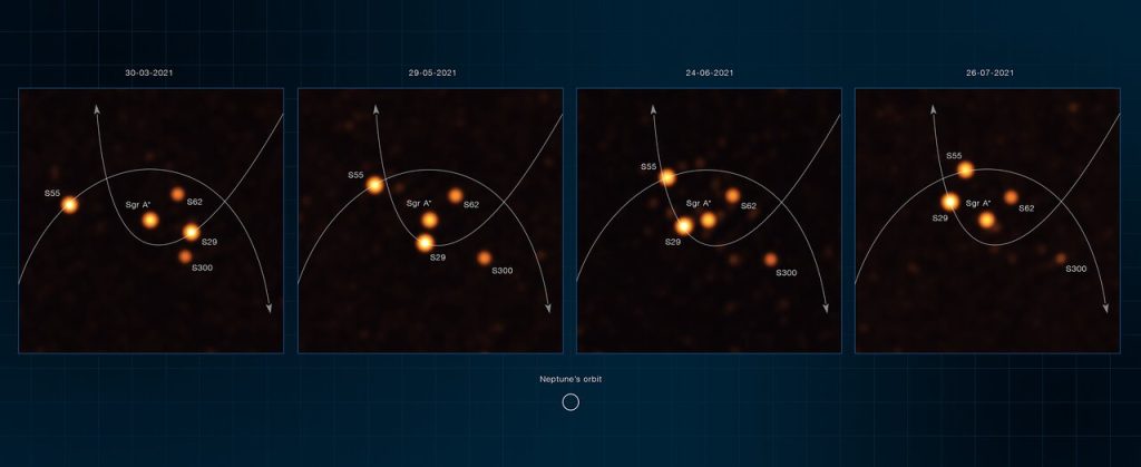 Con sus últimas observaciones, realizadas entre marzo y julio de 2021, el equipo se centró en realizar mediciones precisas de las estrellas a medida que se acercaban al agujero negro. Esto incluye a la estrella S29, que ostenta el récord, ya que hizo su aproximación más cercana al agujero negro a finales de mayo de 2021. Pasó a una distancia de solo 13000 millones de kilómetros, aproximadamente 90 veces la distancia Sol-Tierra, a la impresionante velocidad de 8740 kilómetros por segundo. Nunca se ha observado que ninguna otra estrella pase tan cerca o viaje tan rápido alrededor del agujero negro.