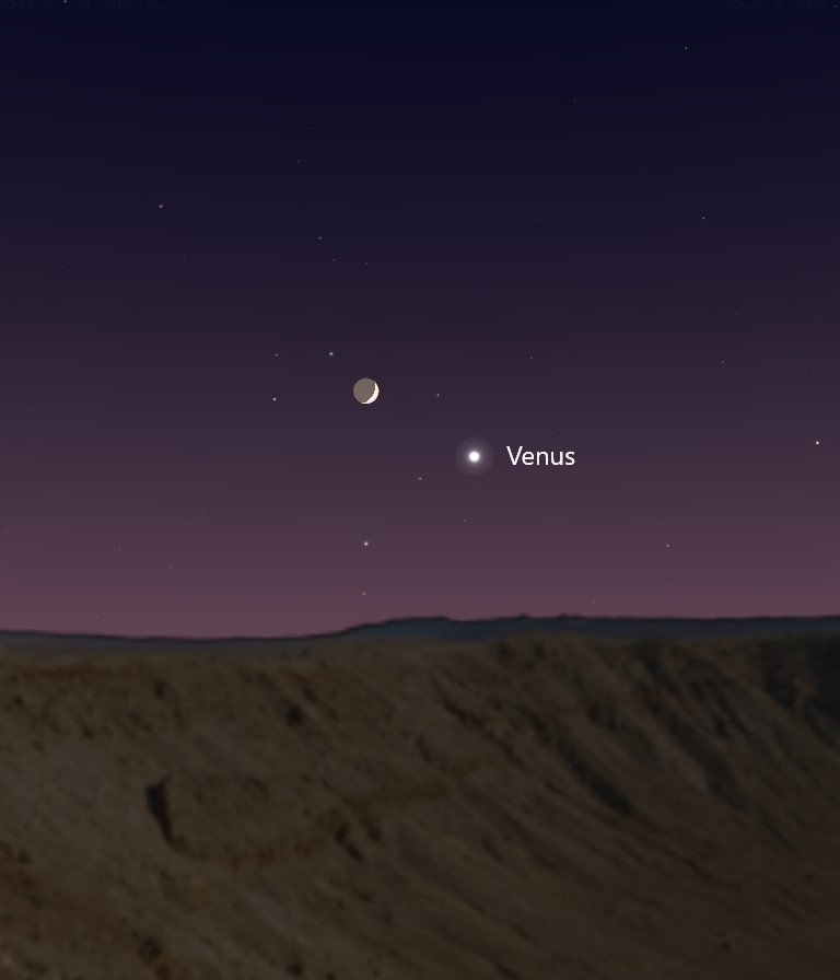 Este fin de semana Venus alcanzará su máxima declinación sur y estará en conjunción con la Luna creciente