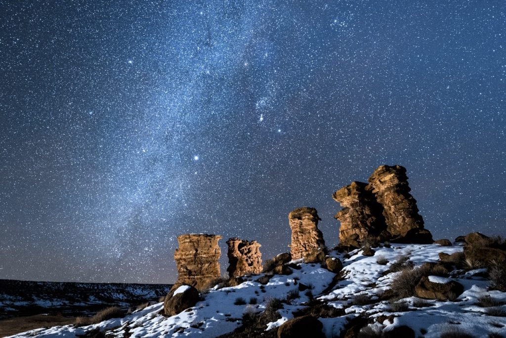 Esta imagen de la Vía Láctea fue obtenida la noche del 25 de febrero de 2019, desde Bluff (Utah, Estados Unidos). La constelación de Orión y la estrella Sirius son visibles en la zona central.