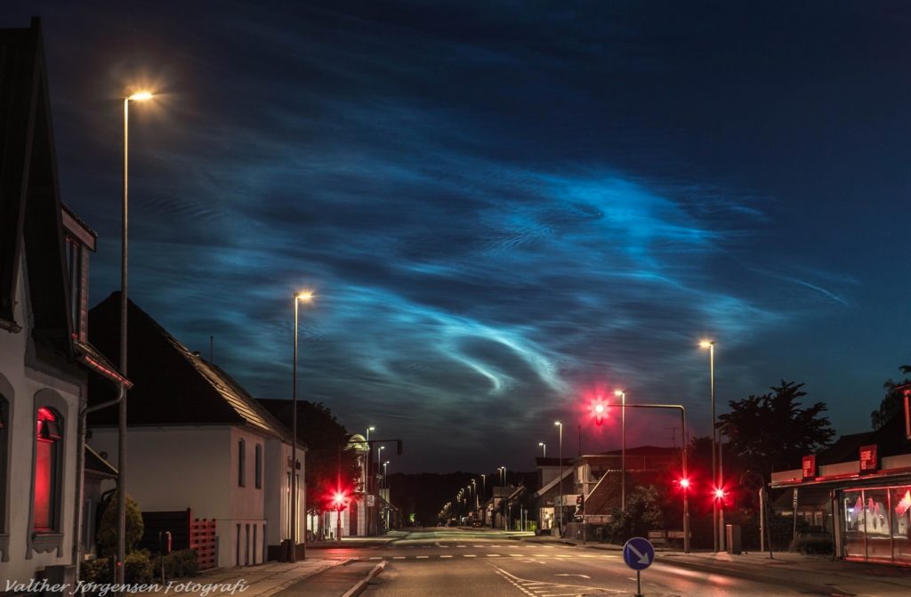 Estupenda fotografía de nubes noctilucentes tomada la noche del sábado, 22 de junio de 2019, desde la ciudad de Auning (Djursland, Dinamarca). La imagen se obtuvo con una cámara Canon EOS 6D; tiene un tiempo de exposición de 3,2 segundos y 800 de ISO.