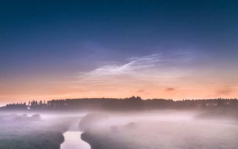 Imagen de nubes noctilucentes tomada durante la madrugada del martes, 4 de junio de 2019, desde Tornby en Hjørring, Dinamarca. Se utilizó una cámara Canon EOS 6Da y un objetivo Samyang a 24mm de distancia focal y f/1,4 de apertura.