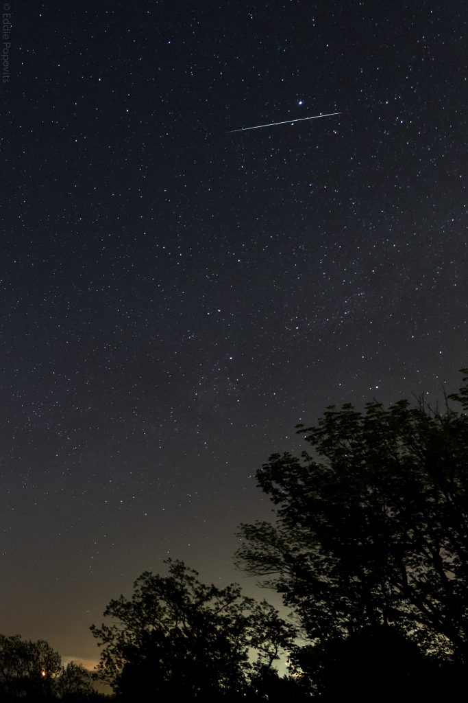 Fotografía de una lírida captada la madrugada del miércoles, 19 de abril de 2017, desde Branson en el estado de Missouri, Estados Unidos. La lluvia de meteoros de las Líridas alcanzará su máxima actividad el próximo 22 de abril. Esta captura tiene 800 de ISO y un tiempo de exposición de 25 segundos; se usó una cámara Canon EOS Rebel T6i.