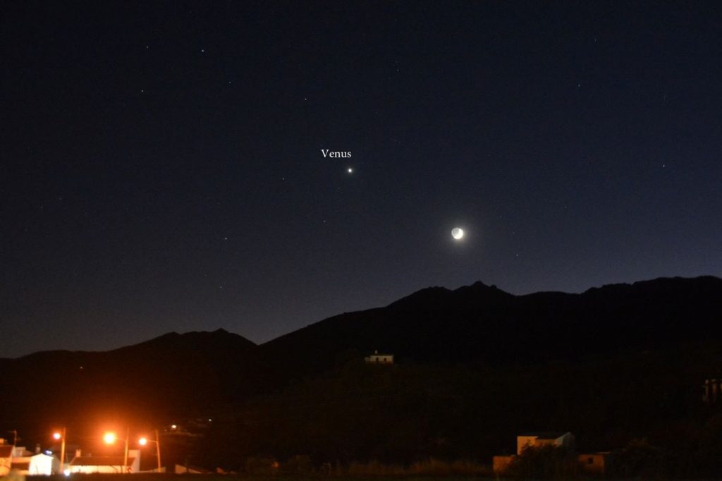 Foto de Venus y la Luna tomada desde Yunquera, Málaga