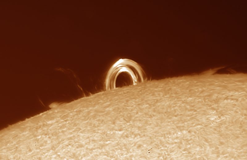 Fotografía de una prominencia solar en el limbo Oest, captada el domingo, 10 de septiembre de 2017, desde Plainville en el estado de Connecticut, Estados Unidos. La imagen fue obtenida con una cámara ZWO 174MM refrigerada y un telescopio solar Lunt LS100THA DD.