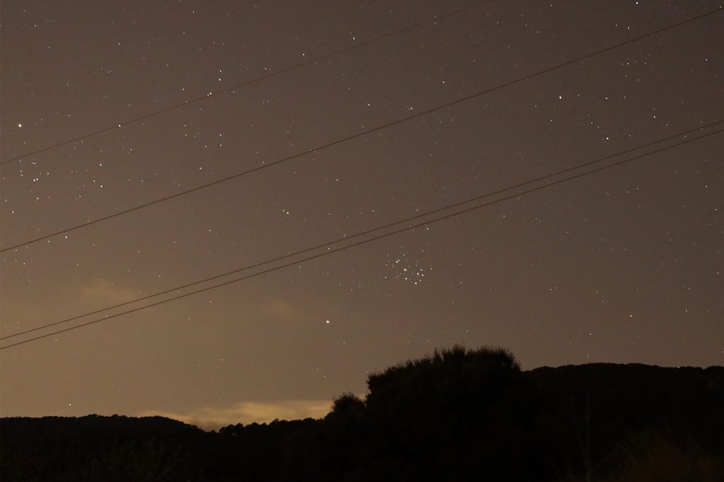 Fotos de Aldebarán, Marte y las Pléyades tomada desde Arenys de Munt, Barcelona