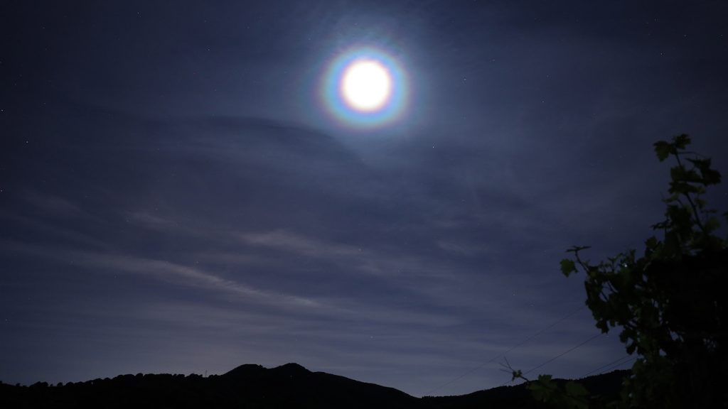 La segunda foto muestra a la Luna rodeada por una corona a las 01:05 (hora local) del domingo, 3 de mayo de 2020. Fue tomada con una cámara Canon EOS R a 4 segundos de tiempo de exposición, 1600 de ISO y f/4 de apertura.