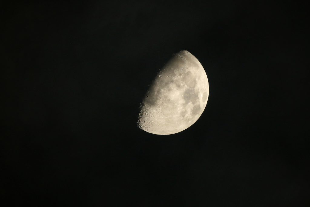 La segunda foto muestra a la Luna con las estrellas Pólux y Cástor; fue tomada a las 23:35 (hora local) con una cámara Canon EOS R; tiene 1,3 segundos de tiempo de exposición, 1600 de ISO y f/4 de apertura.