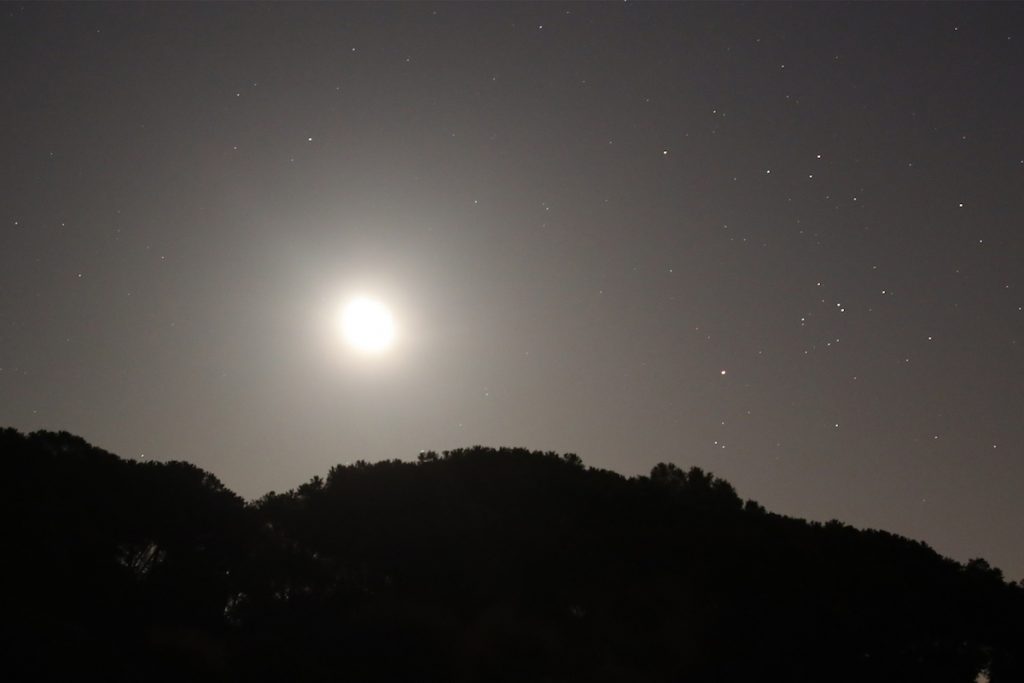 La primera foto muestra la salida de la Luna a las 00:41 (hora local). Fue captada con una cámara Canon EOS 70D a 1/160 de segundo de tiempo de exposición, 1600 de ISO y f/5.6 de apertura.