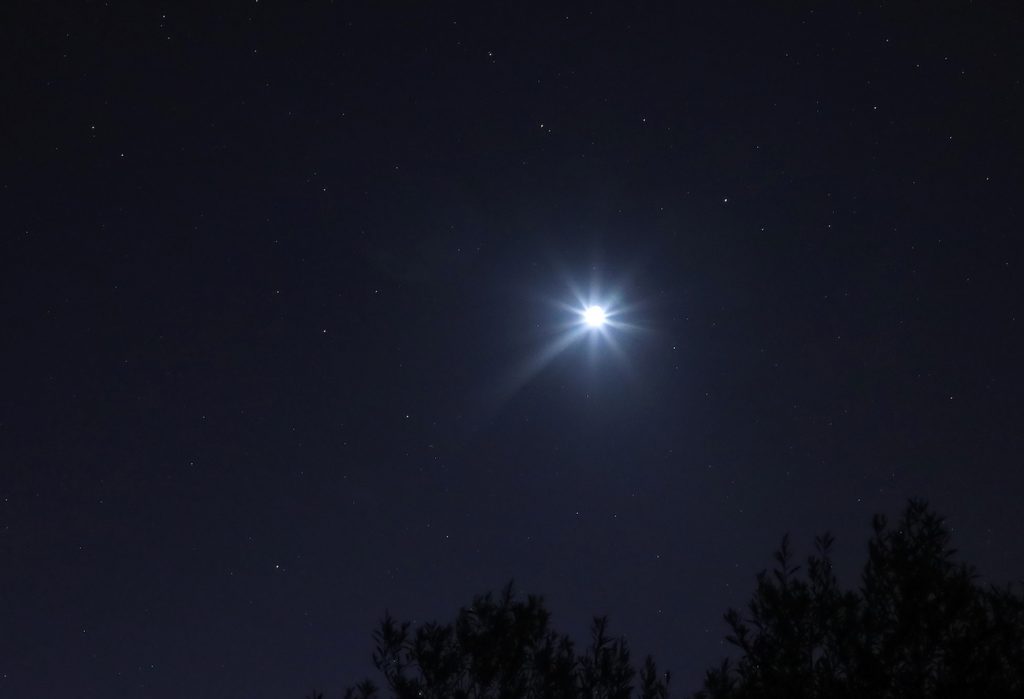 La segunda foto se tomó a las 07:34 (hora local) con una cámara Canon EOS R a 3,2 segundos de tiempo de exposición, 1600 de iSO y f/8 de apertura. La estrella Regulus es visible arriba y a la derecha de la Luna.