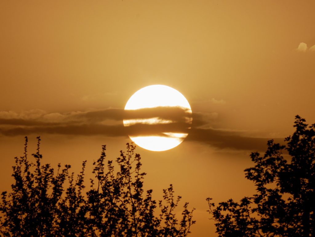 Fotografías del Sol tomadas al atardecer del viernes, 2 de abril de 2021, desde la ciudad de Zaragoza, España. Las cinco capturas fueron obtenidas con una cámara Panasonic Lumix Gx80 y un objetivo Panasonic (100-400mm).