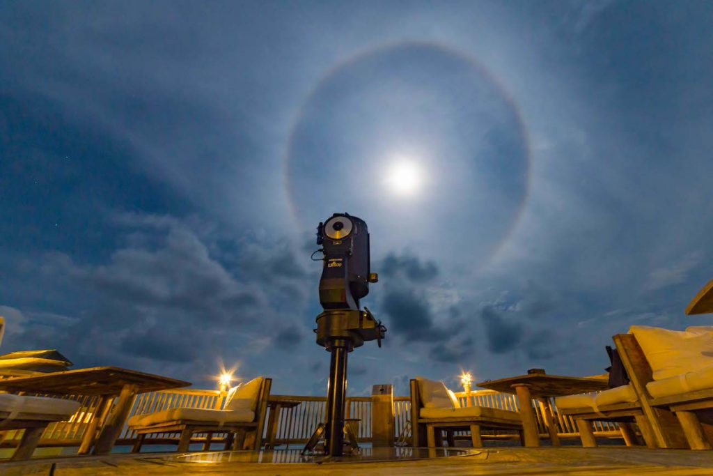 Esta imagen muestra un halo lunar captado sobre Medhufaru, islas Maldivas, la noche del miércoles, 17 de abril de 2019. La imagen fue hecha con una cámara Canon EOS 6D; tiene un tiempo de exposición de 8 segundos y 1600 de ISO (f/4 de apertura).