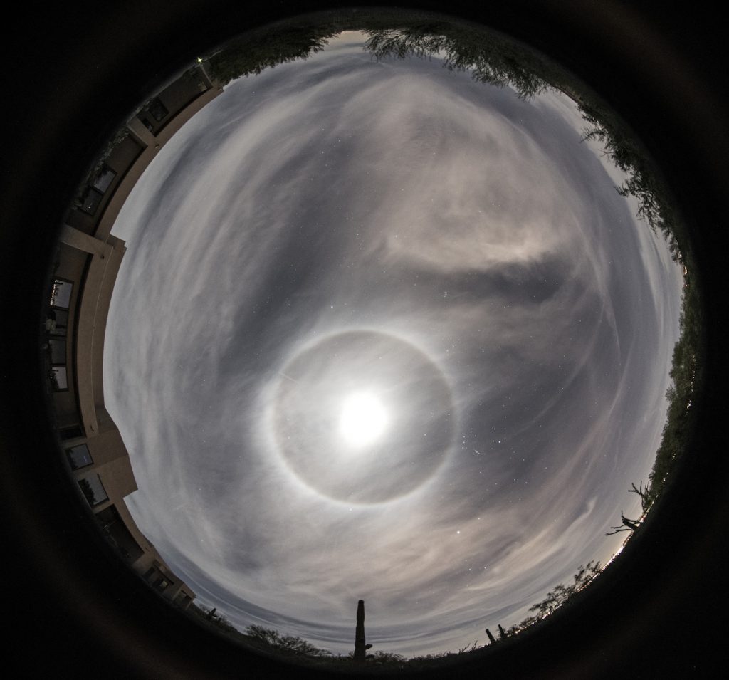 Halo lunar fotografiado desde Tucson, Arizona, Estados Unidos