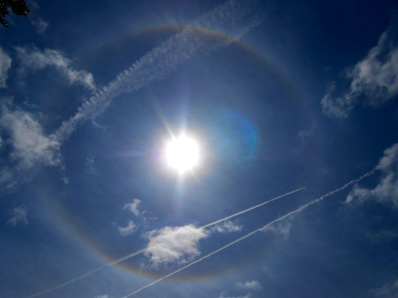 Halo solar captado la mañana del domingo, 26 de mayo de 2019, desde el estado de Iowa, Estados Unidos. La imagen se obtuvo a las 11:30 (hora local) con una cámara Nikon CoolPix S3300; el tiempo de exposición es de 1/1250 de segundo, 80 de ISO y f/11,5 de apertura.