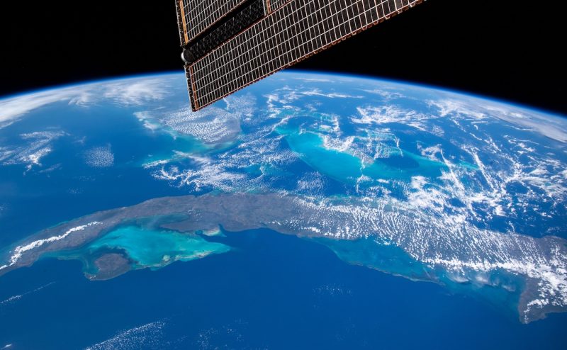 Imagen de Cuba tomada desde la Estación Espacial Internacional el 23 de abril de 2019, a las 20:24 UTC. Las Bahamas y la península de Florida, Estados Unidos, son visibles en la zona superior. Al momento de tomarse la imagen, la ISS se encontraba ubicada sobre el mar Caribe, al noroeste de las islas Caimán.
