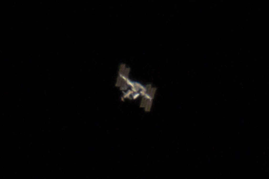 Imagen de la Estación Espacial Internacional tomada la madrugada del domingo, 28 de abril de 2019, desde St. Johns en el estado de Florida, Estados Unidos. Se utilizó una cámara Canon EOS R, un telescopio AP 130EDFGT y un filtro Baader FFC (tiempo de exposición de 1/500 de segundo.