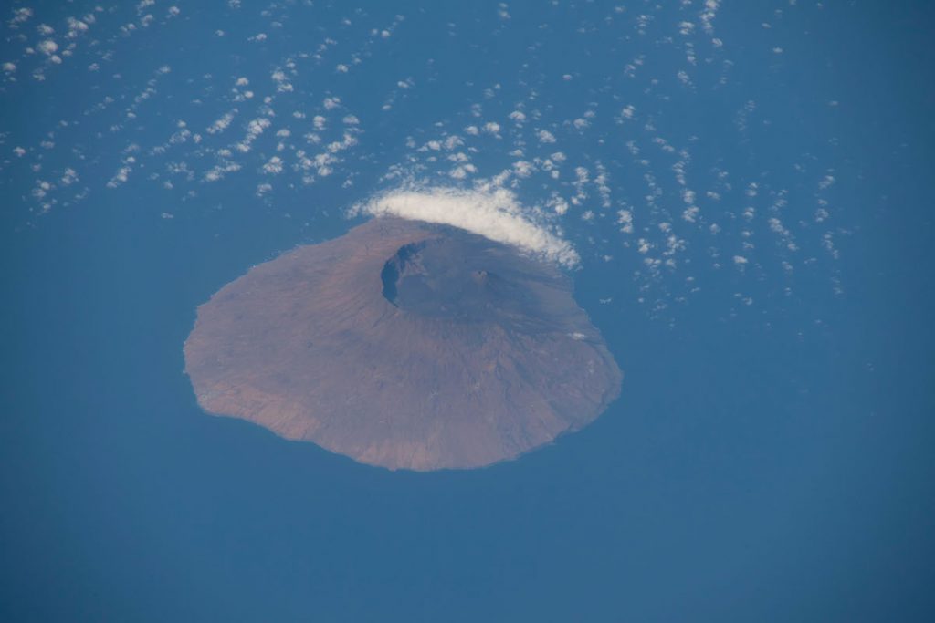 Imagen de Foto, una de las islas del archipiélago de Cabo Verde, captada desde la Estación Espacial Internacional el 24 de marzo de 2021, a las 16:42 (UTC). Se utilizó una cámara Nikon D5 y un objetivo Sigma a 500mm de distancia focal. Tiene un tiempo de exposición de 1/640 de segundo y 400 de ISO.