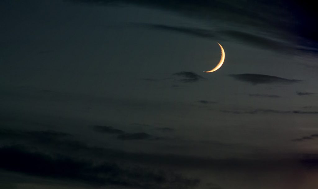 Imagen de la Luna creciente captada al anochecer del sábado, 3 de agosto de 2019, desde el Monte Caburn en Sussex, Inglaterra. La captura se obtuvo con una cámara Nikon D90 a 300mm de distancia focal y f/8 de apertura. Tiene un tiempo de exposición de 1/2 segundo y 100 de ISO.