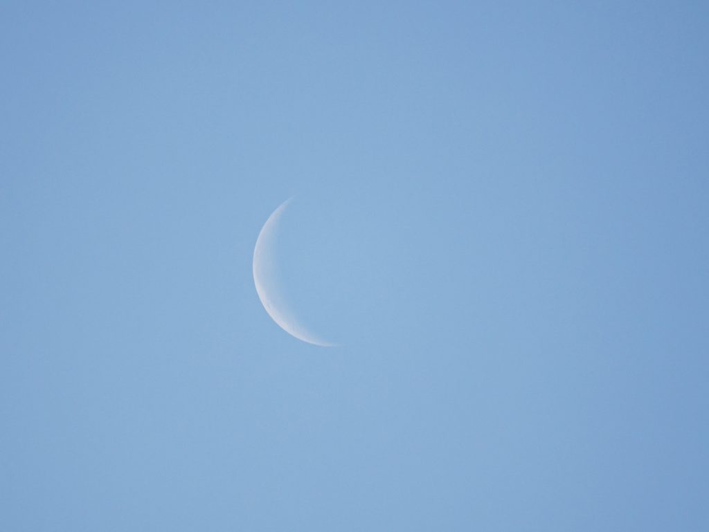 Imagen de la Luna menguante tomada la mañana del lunes, 18 de mayo de 2020, desde Zaragoza, España. La imagen fue tomada con una cámara Panasonic Lumix GX80 y un objetivo Panasonic Lumix (100-300mm).