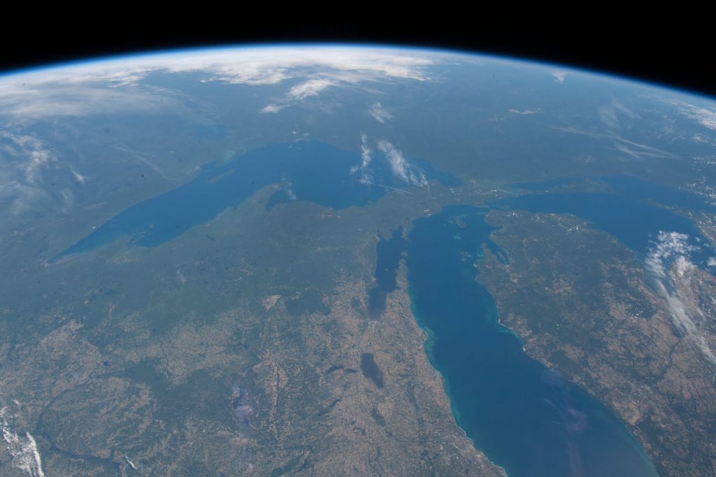 Imagen de los Grandes Lagos tomada desde la Estación Espacial Internacional el 15 de junio de 2020, a las 15:25 UTC. Se utilizó una cámara Nikon D5 y un objetivo Nikkor a 28mm de distancia focal.