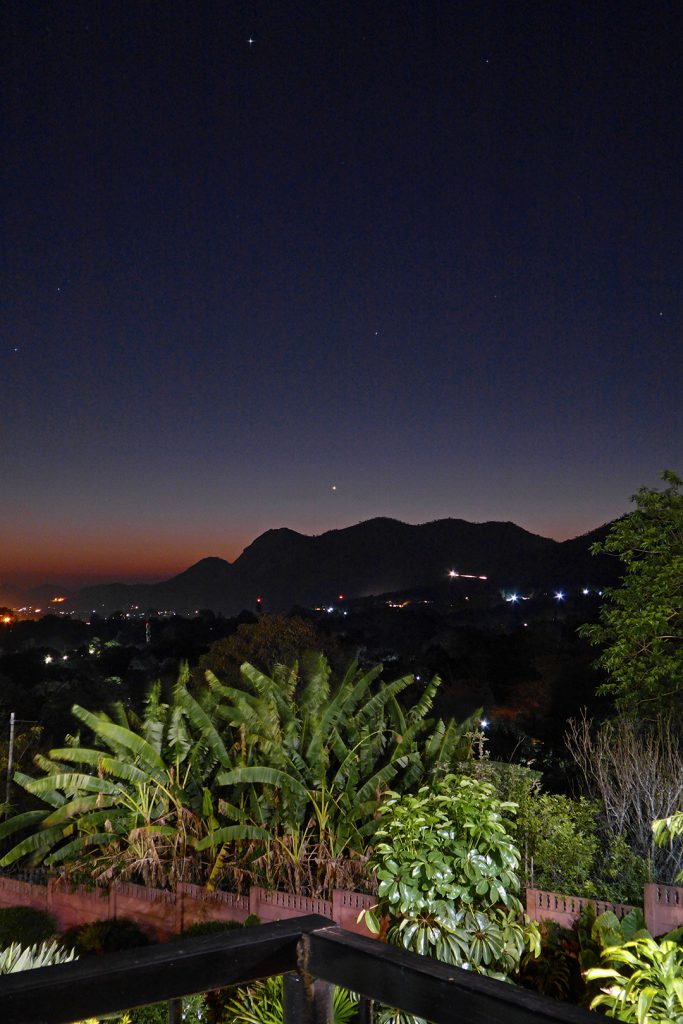 Imagen tomada al anochecer del lunes, 7 de septiembre de 2020, desde Mutare (Zimbabue). Mercurio es el objeto brillante, sobre las montañas, en la zona central de la imagen. La captura tiene 1/4 de segundo de tiempo de exposición, 800 de ISO y f/5 de apertura. Se utilizó una cámara Panasonic Lumix DMC-TZ60.