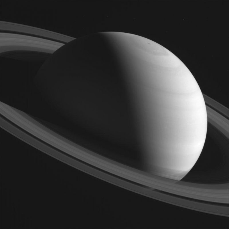 Fotografía de Saturno hecha por la sonda Cassini el pasado 9 de abril de 2016, fue recibida en la Tierra el día 10 de abril. La imagen fue tomada utilizando los filtros CB2 y CL2 de la cámara de la sonda.