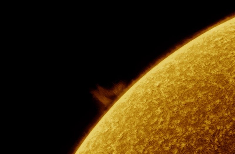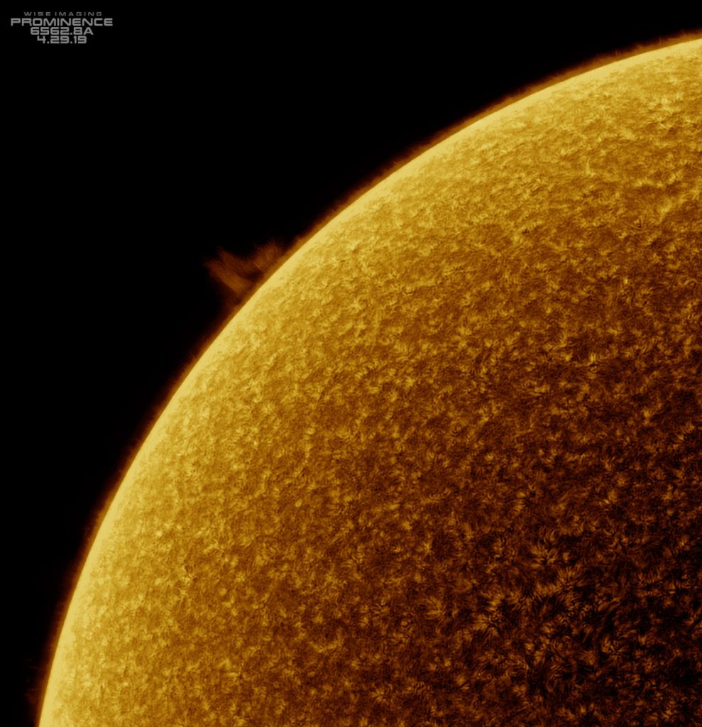 Imagen de una prominencia solar captada la tarde del lunes, 29 de abril de 2019, desde Trenton en el estado de Florida, Estados Unidos. La imagen fue captada en la línea de emisión H-alfa con un telescopio ST80 y un filtro solar Quark.