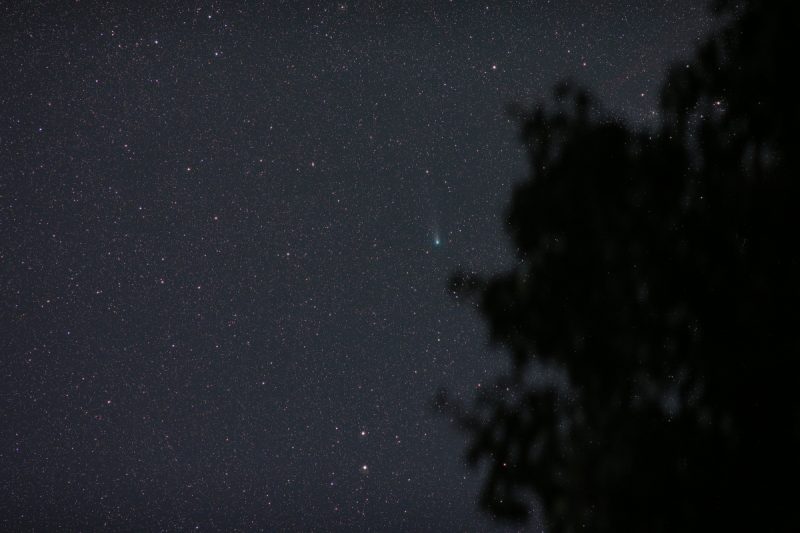 Esta imagen panorámica muestra al Cometa 21P/Giacobini-Zinner la madrugada del viernes, 7 de septiembre de 2018, desde Tiny Twp. en la provincia de Ontario, Canadá. La imagen tiene un tiempo de exposición total de 61 segundos, 3200 de ISO y f/3,5 de apertura. Se usó una cámara Canon EOS 6D.