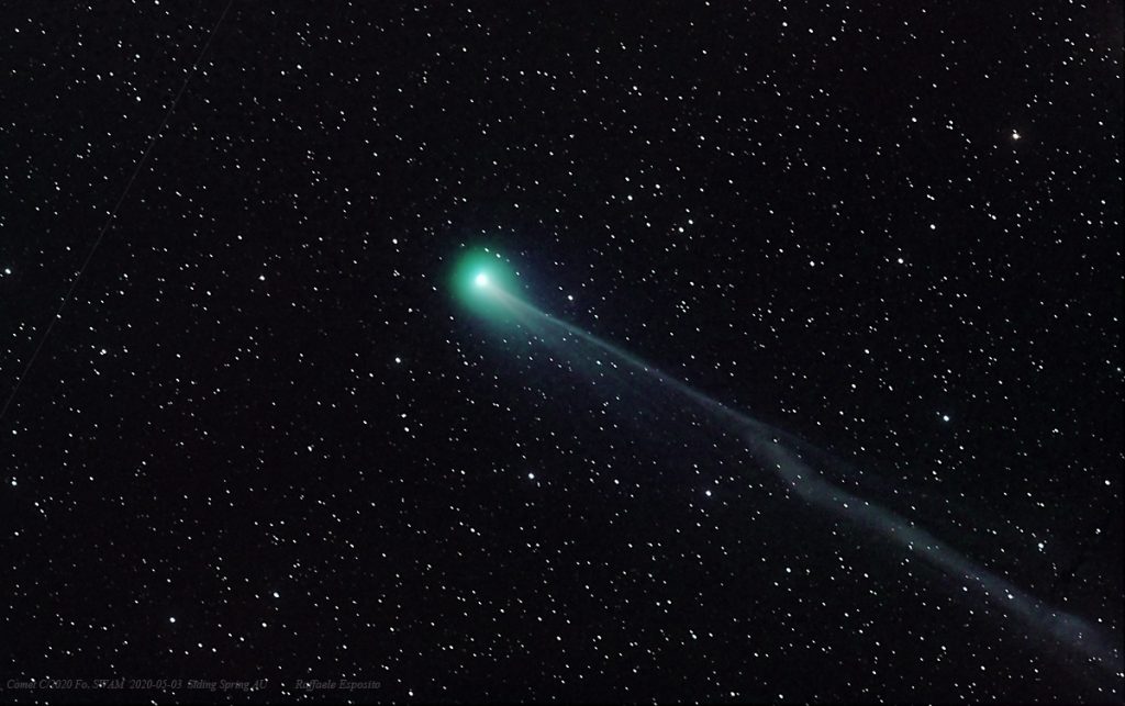 Imagen del Cometa C/2020 F8 (SWAN) tomada la madrugada del domingo, 3 de mayo de 2020, desde Siding Spring en Nueva Gales del Sur, Australia. El cometa se encuentra actualmente en la constelación de Cetus con una magnitud aparente de +8,39.