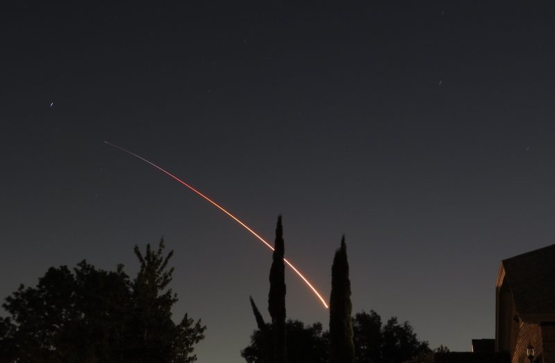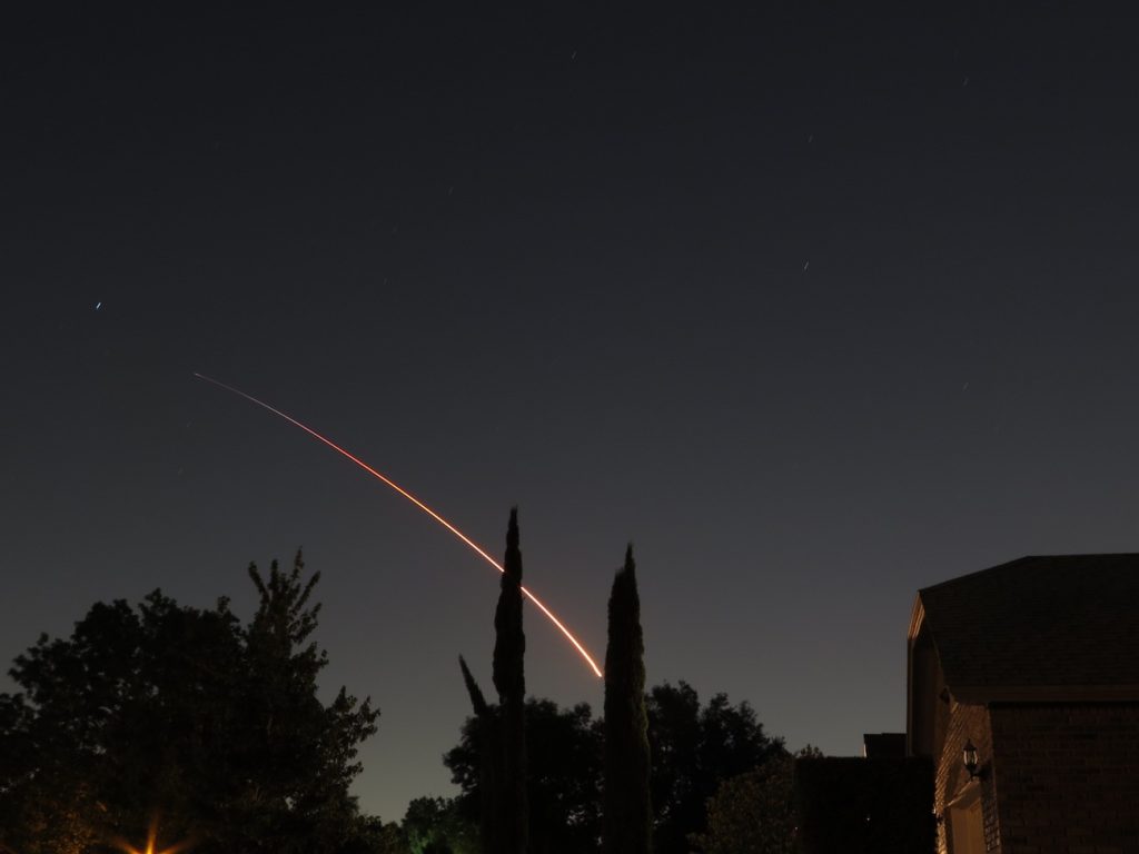 Imagen del lanzamiento del cohete Falcon 9, de SpaceX, captado la noche del jueves, 23 de mayo de 2019, desde la ciudad de Orlando, Florida, Estados Unidos. Se utilizó una cámara Canon PowerShot G16; la imagen tiene un tiempo total de exposición de 80 segundos y 80 de ISO.