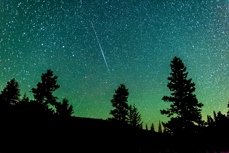 Imagen del paso de un satélite Iridium tomada la noche del martes, 7 de agosto de 2018, desde el condado de Kananaskis en la provincia de Alberta, Canadá. La imagen tiene 10 segundos de tiempo de exposición y 800 de ISO; se utilizó una cámara Canon EOS 70D.