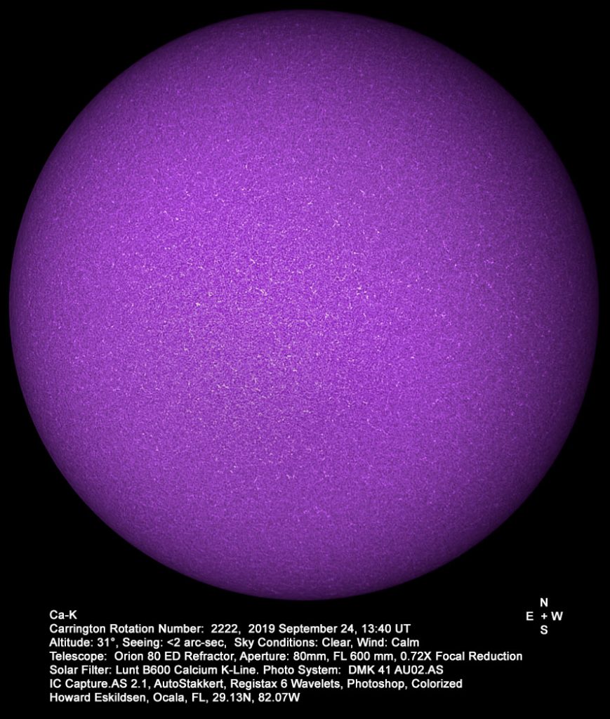 La foto se tomó con una cámara DMK 41, un telescopio Orion 80ED y un filtro solar Lunt B600 Calcio-K.