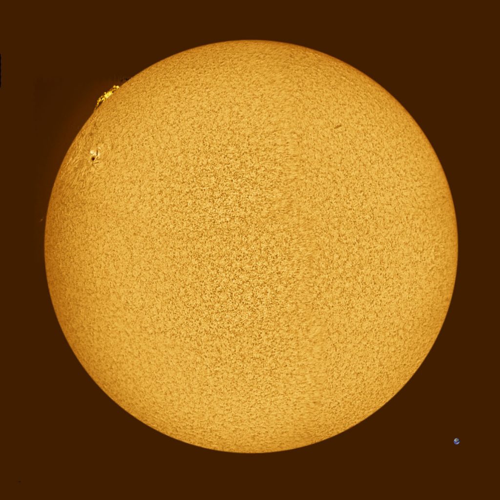 Imagen del Sol tomada la tarde del domingo, 5 de mayo de 2019, desde Oro Valley en el estado de Arizona (Estados Unidos). La imagen fue captada en la línea de emisión H-alfa con una cámara DMK 41.