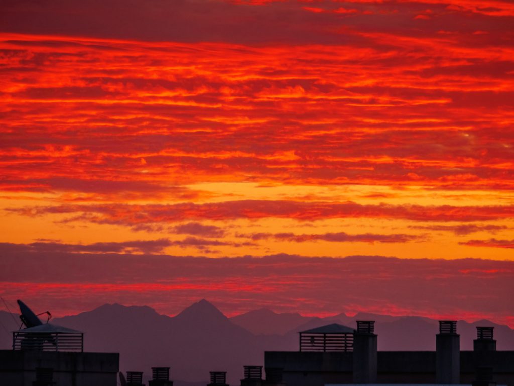 Imágenes del amanecer tomadas el jueves, 29 de agosto de 2019, desde Torremolinos, Málaga, España. Las dos fotos se tomaron con una cámara Panasonic Lumix Gx80 y un objetivo Panasonic (100-300mm).