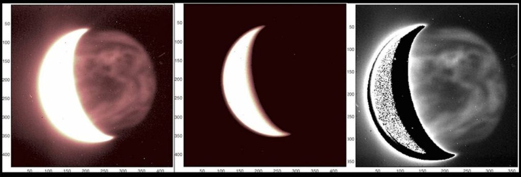 “Además –añade–, WISPR también puede observar en el limbo del planeta una emisión intensa debido a la fluorescencia del oxígeno, por eso el limbo es tan brillante. Esta emisión sí que ocurre en el rango del visible”. La sorpresa vino por que WISPR saturaba al observar el lado diurno (con lo que no pudimos ver nada), mientras que en lado nocturno observamos la superficie además de la fluorescencia!